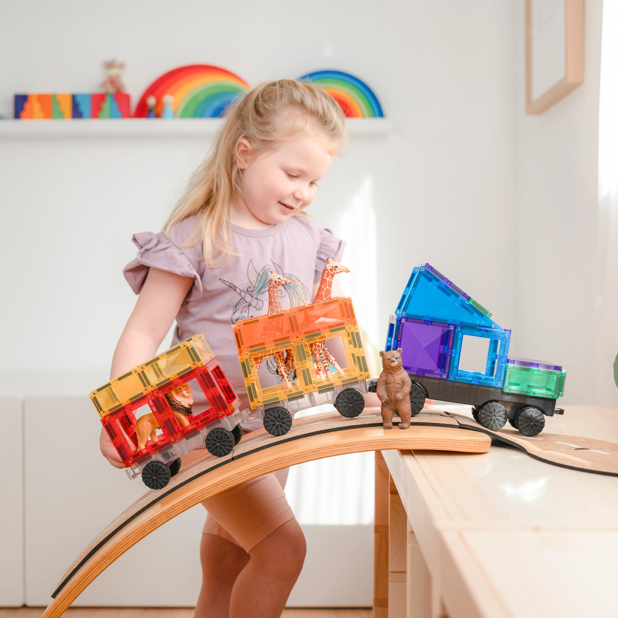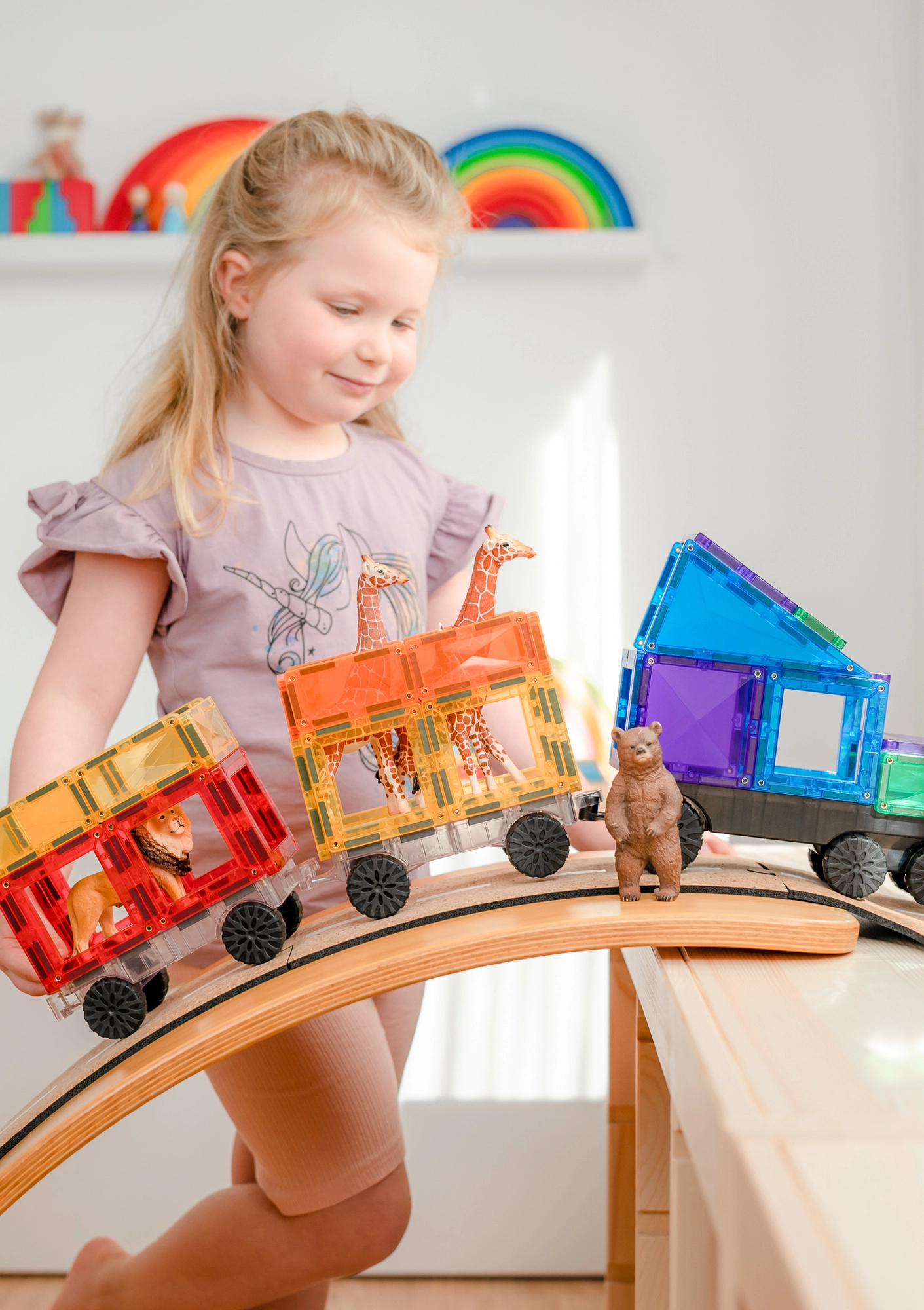 - Gioco creativo aperto – costruisci veicoli, vagoni, ponti e intere scene di trasporto.