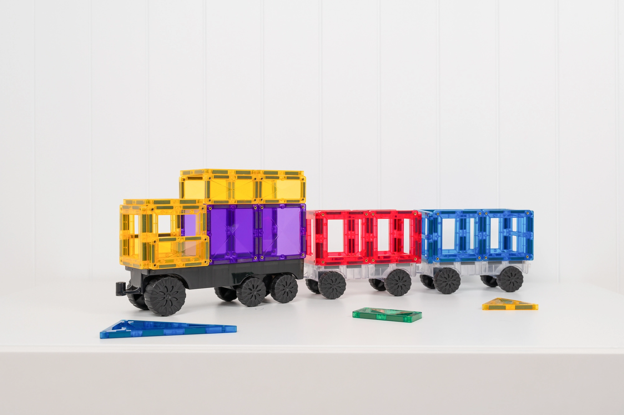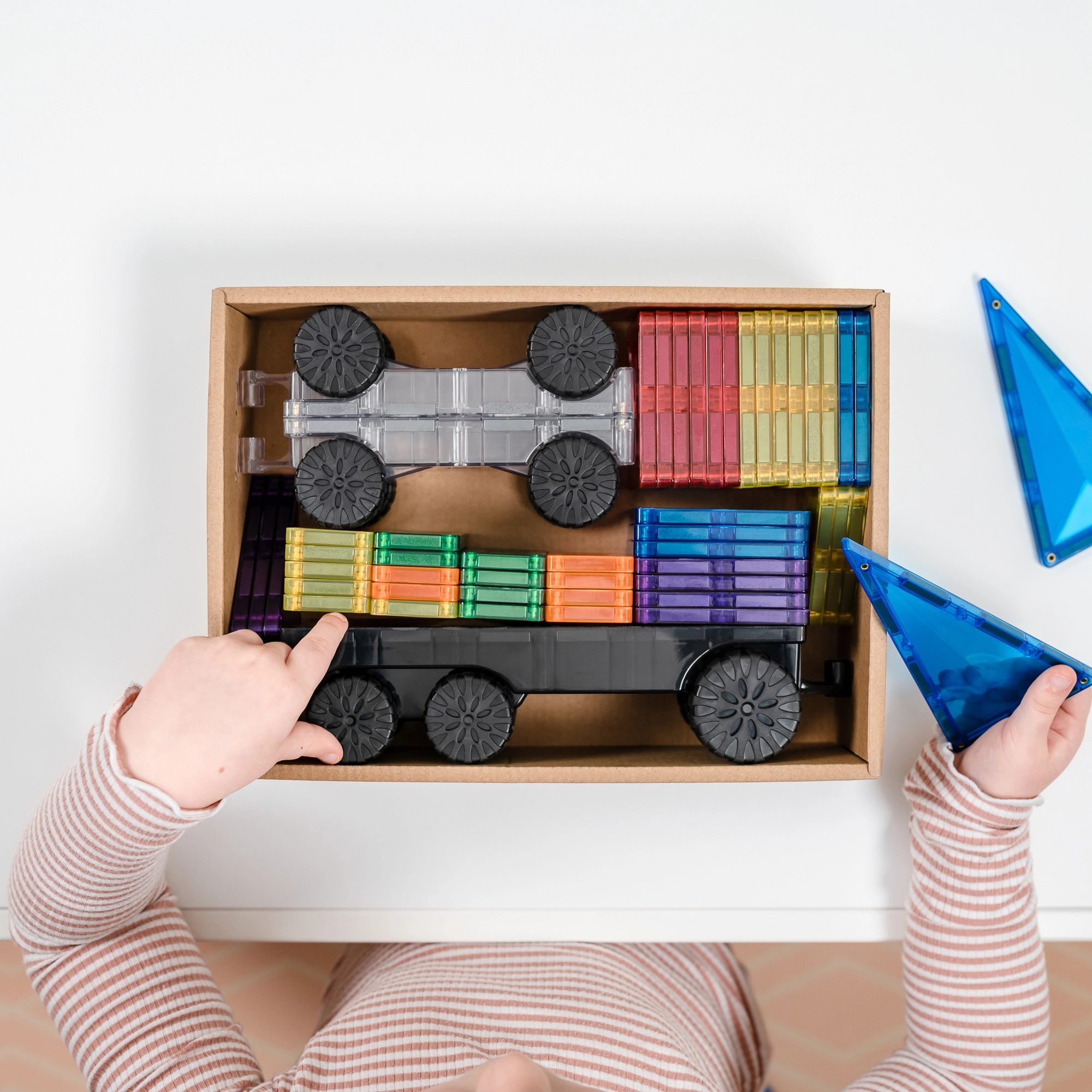 Scopri il mondo creativo delle costruzioni con il set magnetico Connetix Rainbow Transport Pack con 50 pezzi. Grazie ai potenti magneti al neodimio, alle tessere arcobaleno traslucide e ai telai con ruote, i bambini costruiscono facilmente auto, treni e rimorchi, sviluppando le competenze STEAM, la percezione spaziale e la motricità fine. Il set è senza BPA e ftalati e compatibile con altri set magnetici.