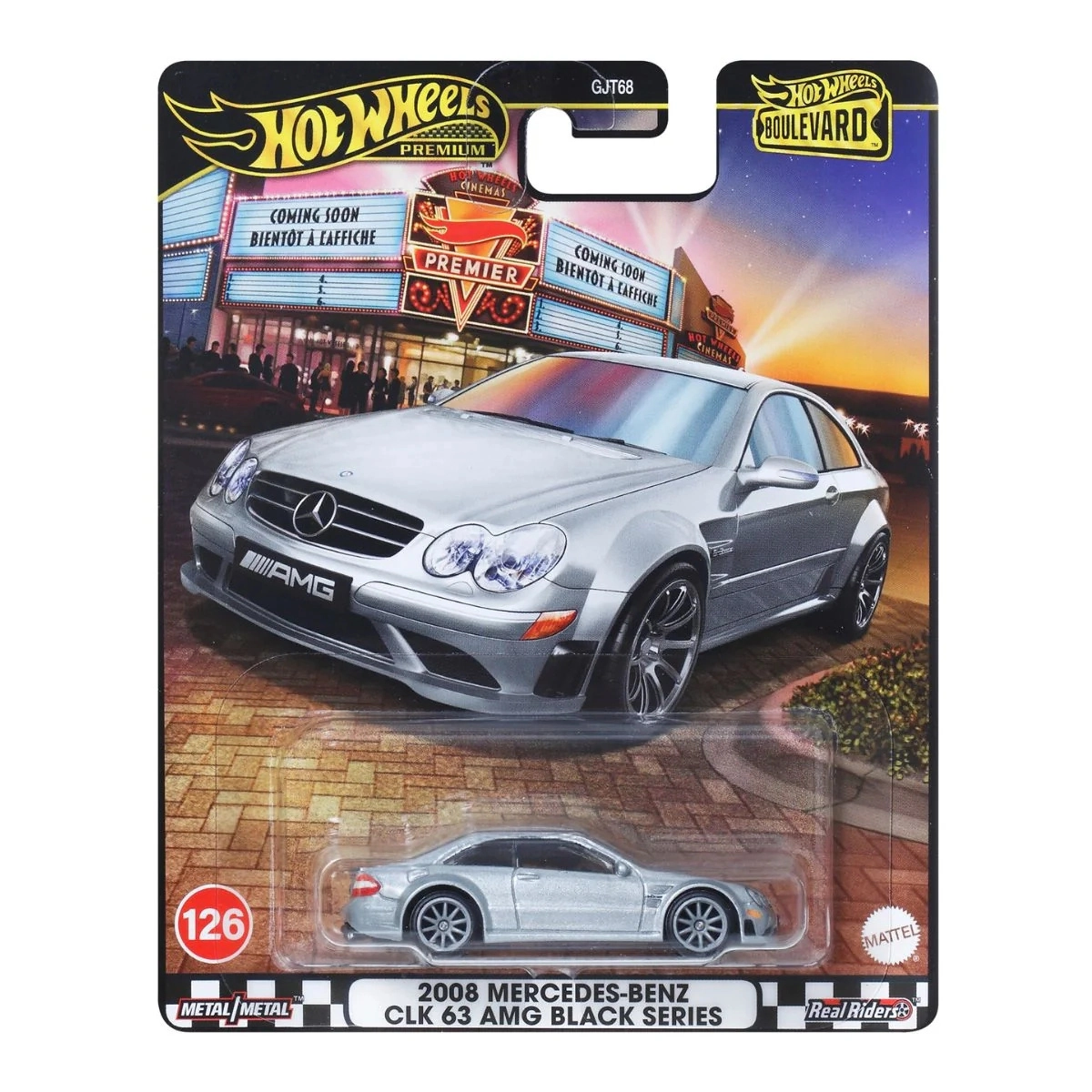Scopri il modello rifinito con precisione Mercedes‑Benz CLK 63 AMG Black Series nel raffinato colore argento. La serie HOT WHEELS Premium Boulevard è nota per l’eccellente qualità costruttiva, la struttura in metallo e i dettagli autentici che conquisteranno ogni appassionato di auto.