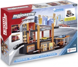Scopri il massimo del divertimento con il set da garage Motor City Plus del marchio MAJORETTE – parcheggio a 3 piani con lunga pista di discesa, loop, ascensore, officina e stazione di servizio con possibilità di “ricarica” anche per auto elettriche. Incluso anche un modellino di auto cittadina per iniziare a giocare subito.