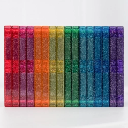 Tessere durevoli e con colori resistenti allo sbiadimento, dallo scintillio affascinante, coinvolgono i bambini e supportano l’apprendimento di colori, luce e forme attraverso il gioco creativo.