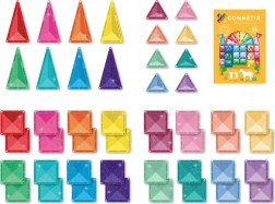 Set da 48 pezzi con quadrati e triangoli, corredato da un libriccino illustrato, compatibile con altri set CONNETIX per progetti senza fine.