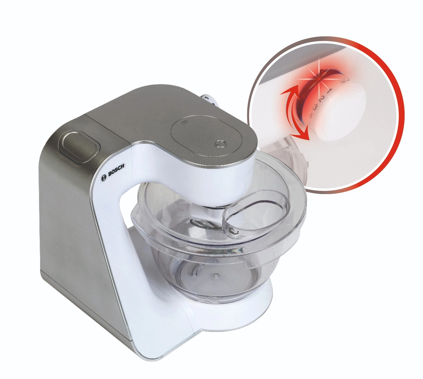 - 2 velocità, luce e suono, braccio ribaltabile, ciotola e frusta removibili