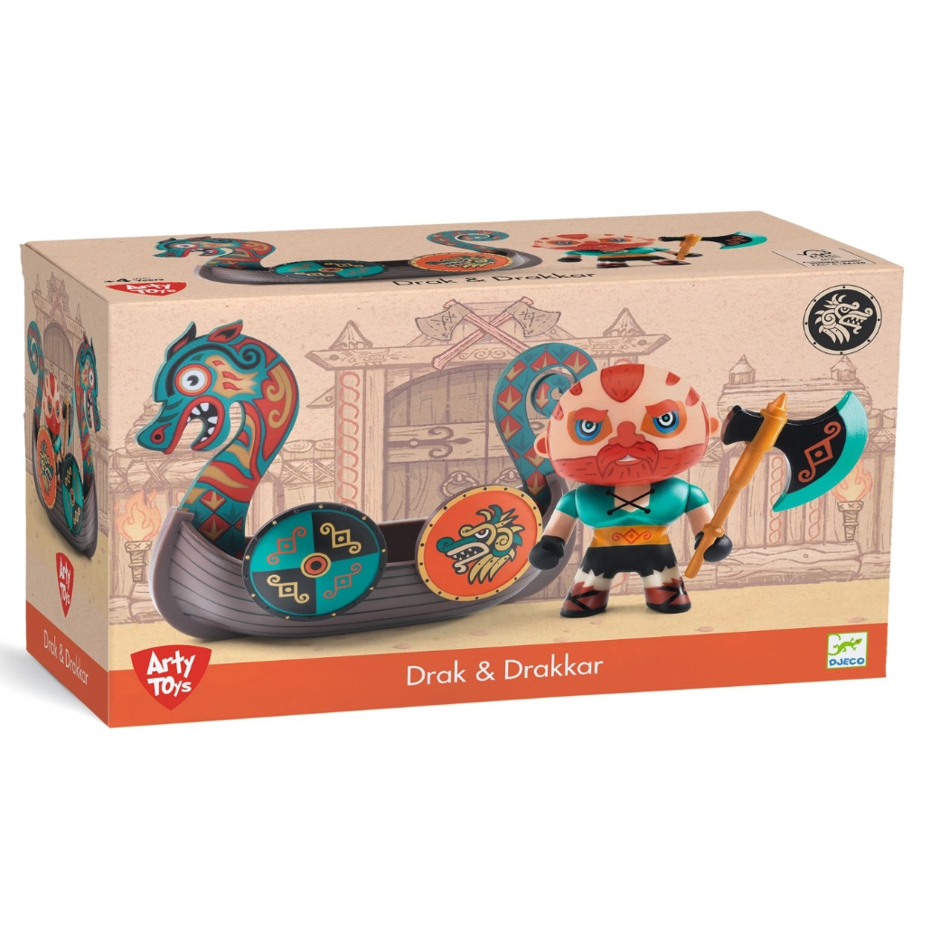 Scopri la collezione Arty Toys con la figurina Drak – un vichingo impavido sulla sua nave. Ideale per la fantasia dei bambini e i giochi avventurosi. Finitura di qualità, design originale DJECO e serie da collezione che entusiasmeranno piccoli e grandi fan.