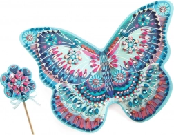Questo magico set fai-da-te contiene tutto il necessario per creare splendide ali da farfalla e una bacchetta floreale con effetti metallici. Le aree e le sagome prestampate mostrano chiaramente dove incollare gemme, paillettes e glitter, così il risultato è sempre riuscito.