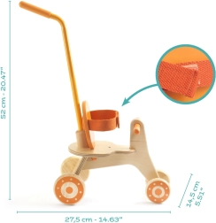 Il design della collezione Pomea del marchio Djeco è noto per la qualità e l’attenzione ai dettagli. Il triciclo si spinge con facilità, si maneggia comodamente ed è un regalo ideale per i piccoli caregiver.