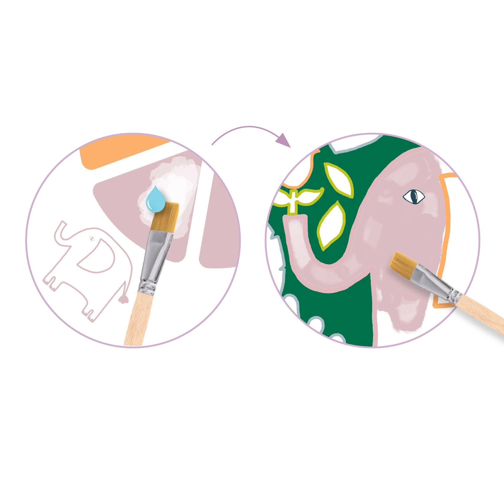 Scoprite la magia del creare con il set creativo Djeco pittura con tavolozza nella giungla. Grazie ai disegni pre-tracciati con animaletti della giungla, i bambini possono dipingere senza frustrazione e ottenere risultati bellissimi. L’ergonomica tavolozza e il pennello in dotazione facilitano il lavoro delle manine.