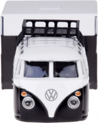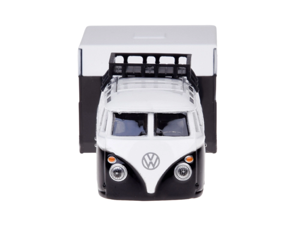 Il set combina l’iconico minibus VOLKSWAGEN con un caravan da campeggio dettagliato. Ideale per la collezione e per il gioco di fantasia.