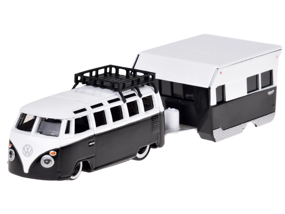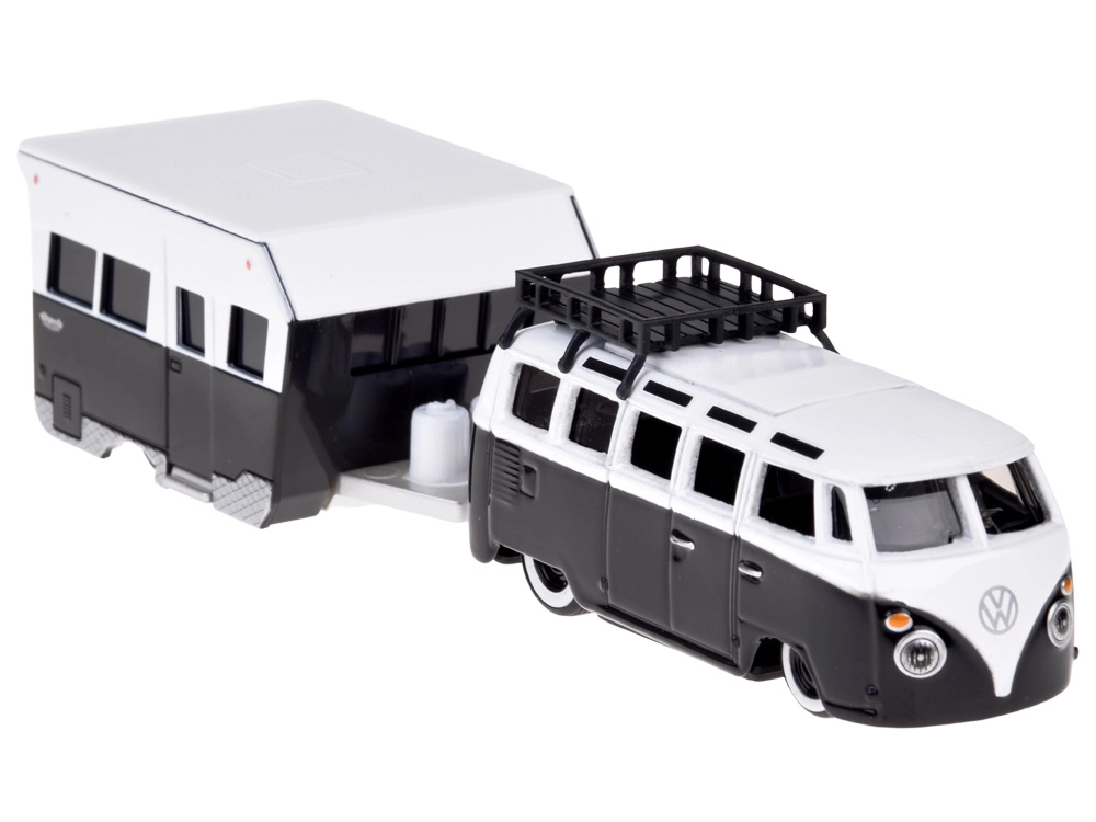 Elegante set da collezione in scala 1:64 che unisce l’iconico VOLKSWAGEN Van Samba a un realistico caravan da campeggio. Carrozzeria in metallo, lavorazione dettagliata e rimorchio sganciabile garantiscono un’ottima resa in vetrina e gioco divertente. Combinazione bianco‑nera, gancio di traino funzionante e dettagli fedeli lo rendono un regalo perfetto per collezionisti e amanti delle auto classiche.