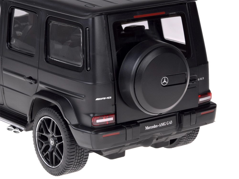 Questo veicolo RC con licenza MERCEDES-AMG G 63 del marchio Rastar colpisce per la lavorazione precisa di esterni e interni: dal cruscotto fedele alle caratteristiche linee della carrozzeria. Il modello offre porte anteriori e portellone posteriore apribili e l'effetto delle luci durante la marcia in avanti e in retromarcia, aumentando il realismo dell'esperienza.