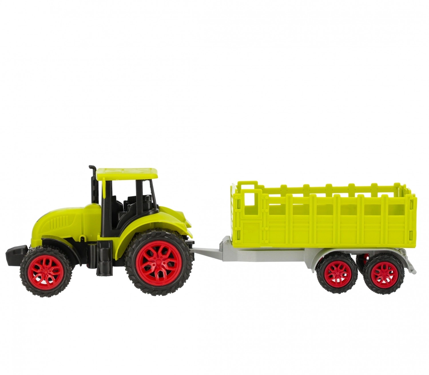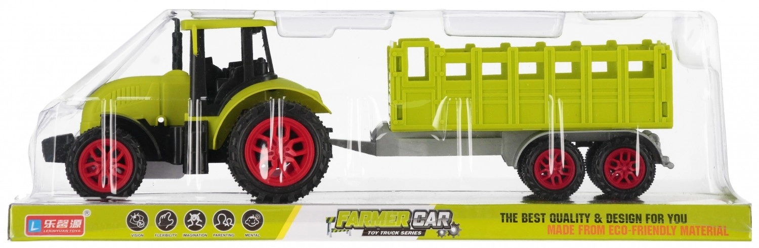 Scopri la gioia del gioco da fattoria con il robusto trattore in plastica con rimorchio staccabile. Grazie alla lavorazione dettagliata, alle ruote che girano liberamente e al facile aggancio del rimorchio, i bambini trasportano con facilità mattoncini, figurine o piccoli tesori.