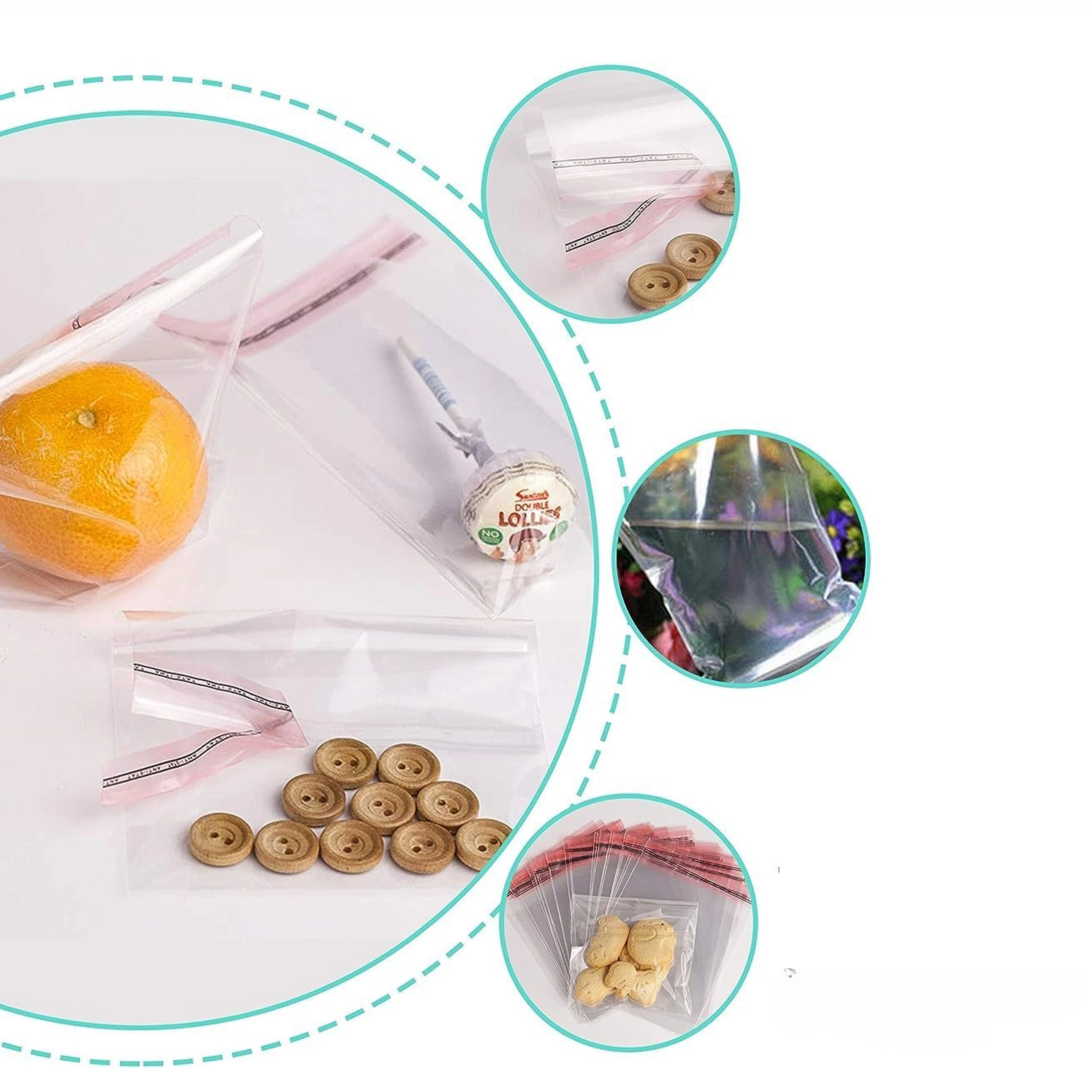 L’aletta autoadesiva consente una chiusura rapida senza strumenti; l’adesivo tiene in modo sicuro ma permette anche di riaprire e richiudere. Grazie alla certificazione per il contatto con alimenti, i sacchetti sono ideali per biscotti, caramelle e prodotti da forno.