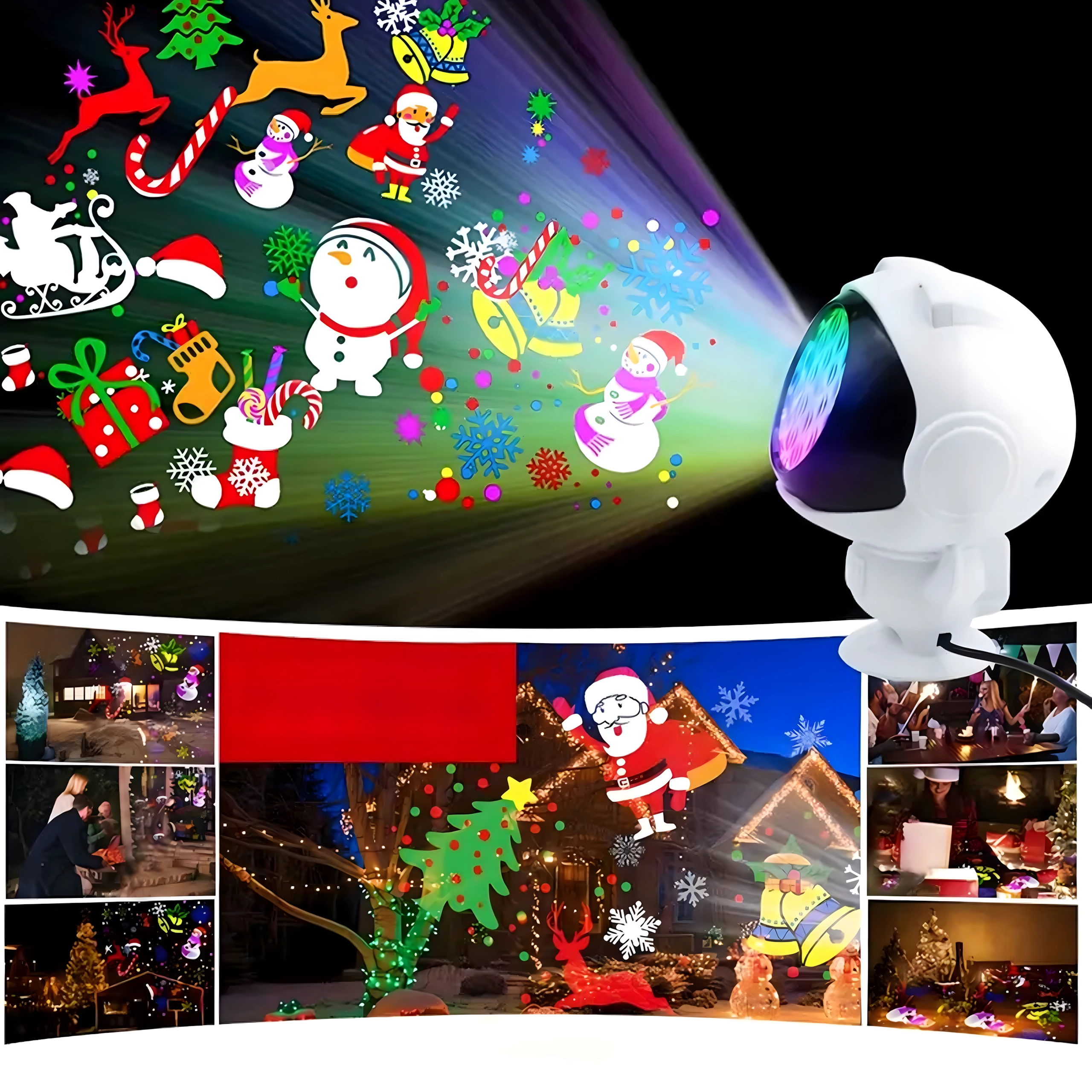 Proiettore compatto a forma di astronauta con base stabile: perfetto per scrivania, mensola o davanzale, completa splendidamente le decorazioni invernali.