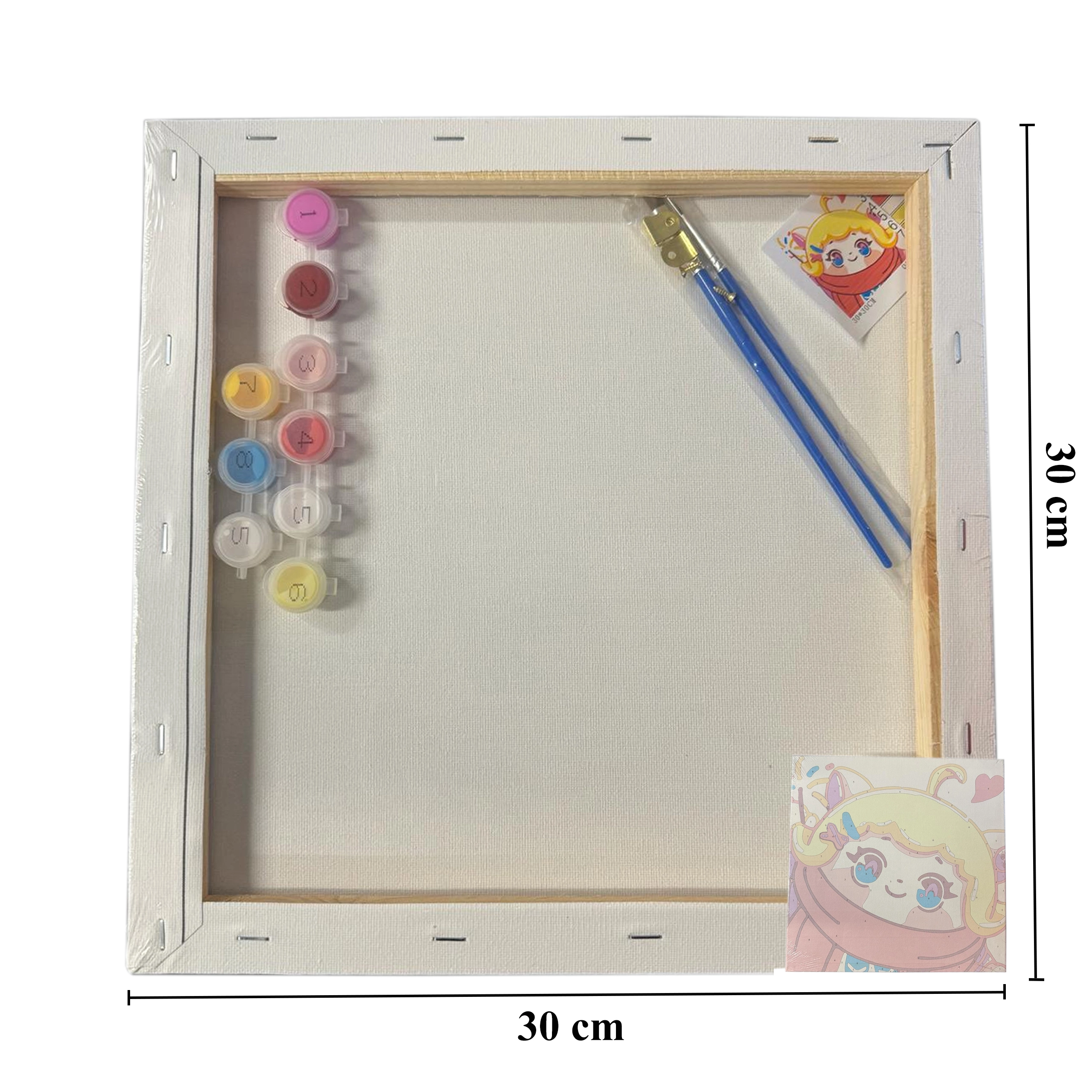Il set è progettato con un livello di difficoltà adatto ai bambini e contiene tutto il necessario: tela prestampata 30 × 30 cm, set di colori acrilici e pennelli. Il motivo e la palette sono inviati casualmente con attenzione ai temi per bambini, per rendere la pittura divertente e accessibile.