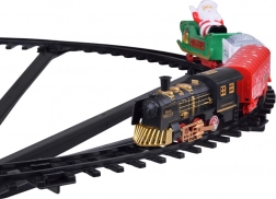 Il convoglio è composto da una locomotiva nera e tre diversi vagoni: un carro bianco per il carbone con la scritta Merry Christmas, un vagone rosso decorato e una slitta verde con Babbo Natale.