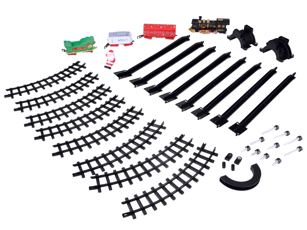 - Locomotiva + 3 vagoni (carro bianco per carbone, vagone rosso, slitta verde con Babbo Natale)