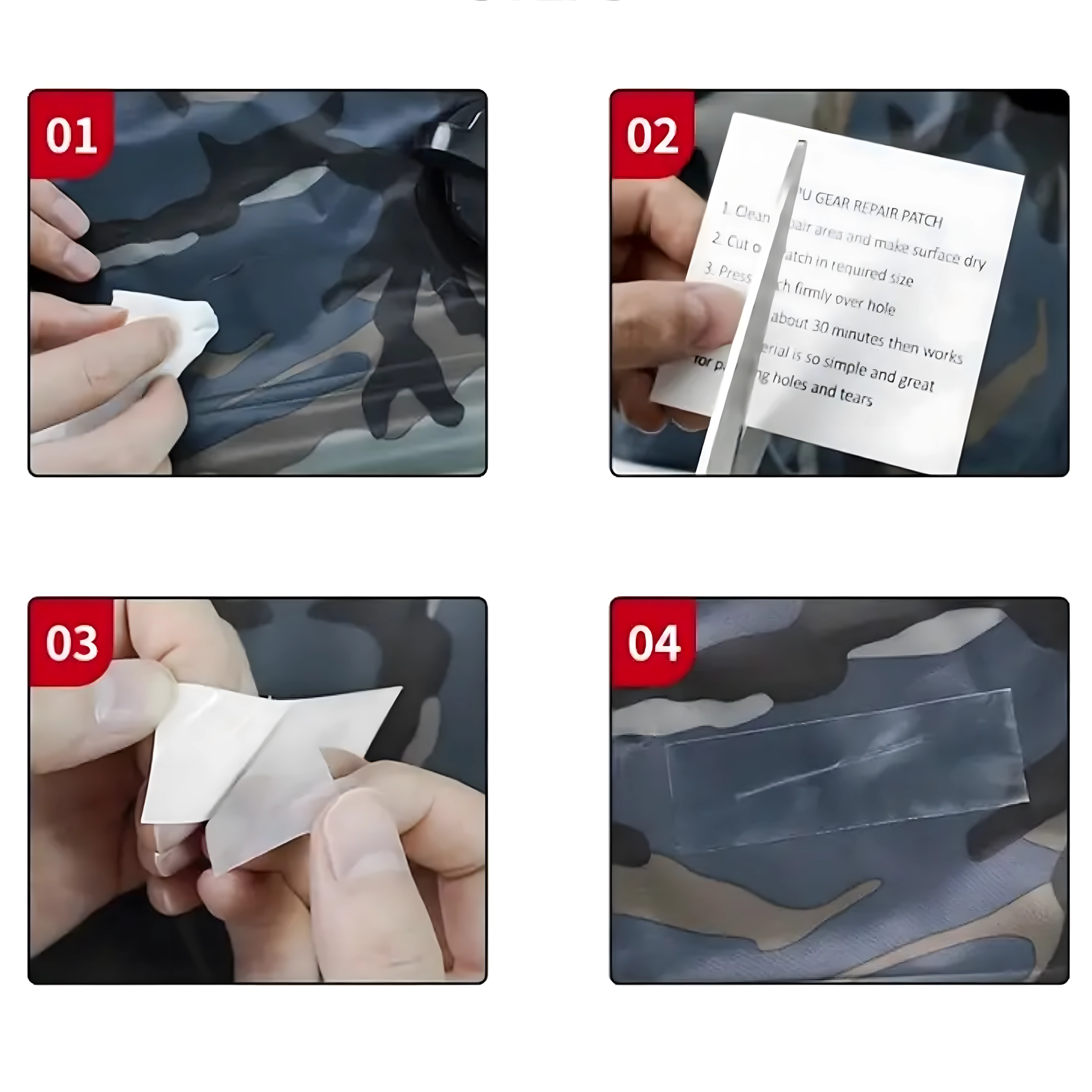 Le toppe trasparenti si fondono con la superficie e creano un rinforzo resistente senza un aspetto invasivo. Ideali per tessuti e PVC.