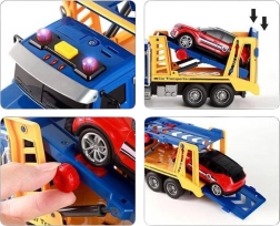 Il carro attrezzi WOOPIE in colore blu con piattaforma giallo‑blu entusiasmerà ogni bambino che ama i veicoli grandi. I pulsanti sulla cabina attivano effetti luminosi e sonori per un gioco ancora più autentico. La piattaforma mobile consente un facile abbassamento e carico della macchinina inclusa, così i bambini possono creare le proprie storie di trasporto.