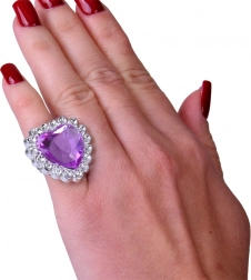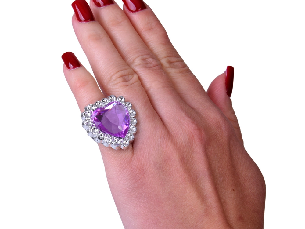 Il set include una collana con una grande pietra viola, orecchini pendenti e un anello vistoso – tutto in uno stile uniforme e incantevole.