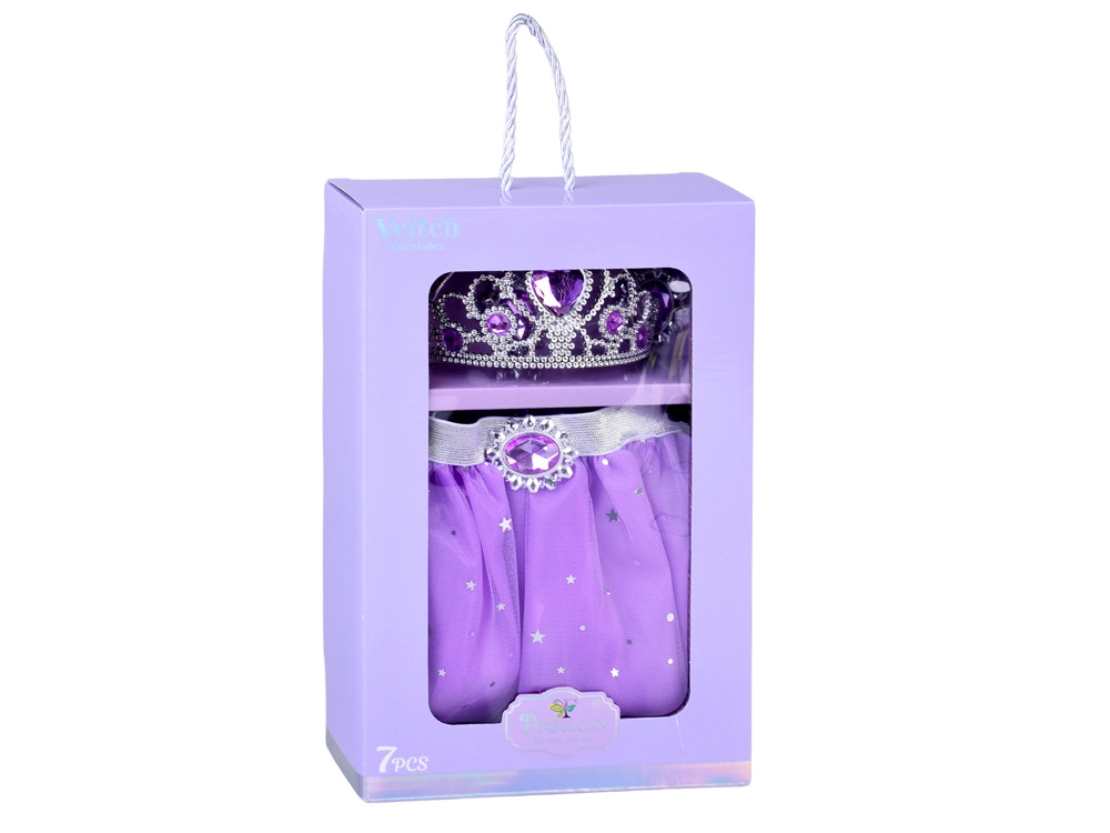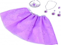 Set magico per piccole principesse con un tutù viola con stelline e ricchi accessori – corona, collana, anello e orecchini. Grazie alla vita elastica e al tulle leggerissimo, la gonna è comoda per giocare tutto il giorno. I gioielli con pietre viola illuminano ogni costume e incoraggiano il gioco creativo da principessa.