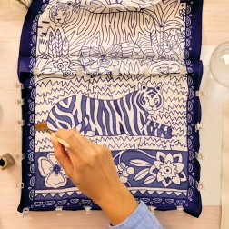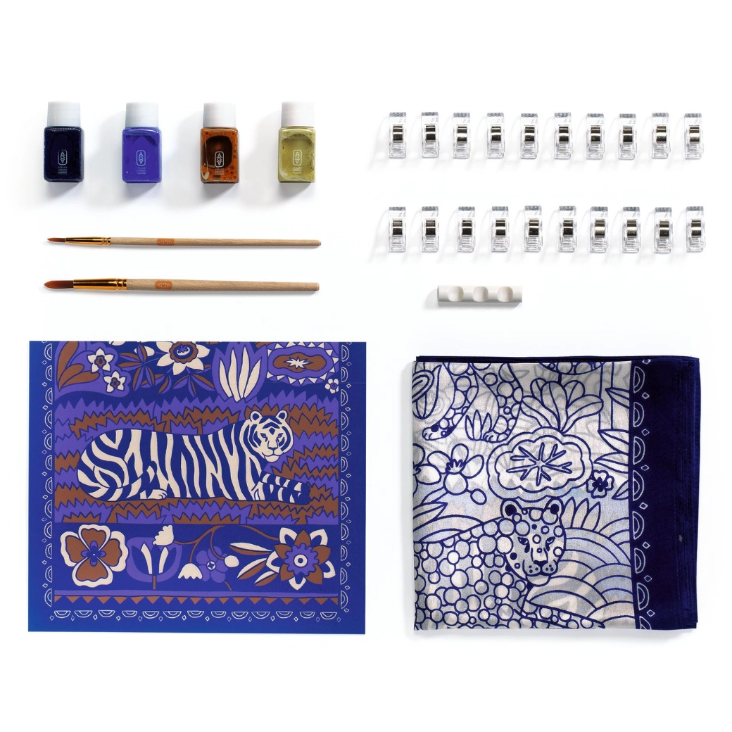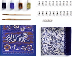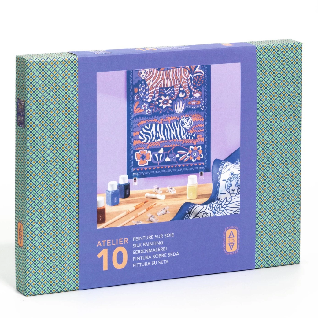Il set Pittura su seta Atelier 10 di DJECO offre tutto il necessario per creare una splendida sciarpa dipinta a mano. I contorni prestampati con motivo di tigre e pattern floreali guidano il pennello e facilitano una colorazione precisa, rendendo il progetto adatto anche ai principianti assoluti. Grazie ai colori di qualità per tessuti otterrai tonalità sature e sfumature uniformi.