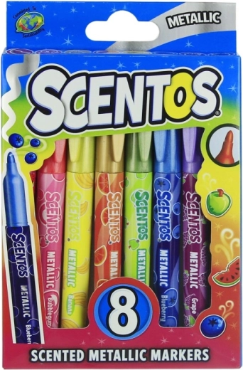 Valorizza i tuoi progetti con i pennarelli metallici SCENTOS, che uniscono colori intensi, brillantezza scintillante e piacevoli profumi fruttati. Ogni pennarello ha un corpo colorato corrispondente alla tonalità, così scegli subito il colore giusto. Il pigmento metallico risalta soprattutto su carte scure e dona alle creazioni un tocco elegante.
