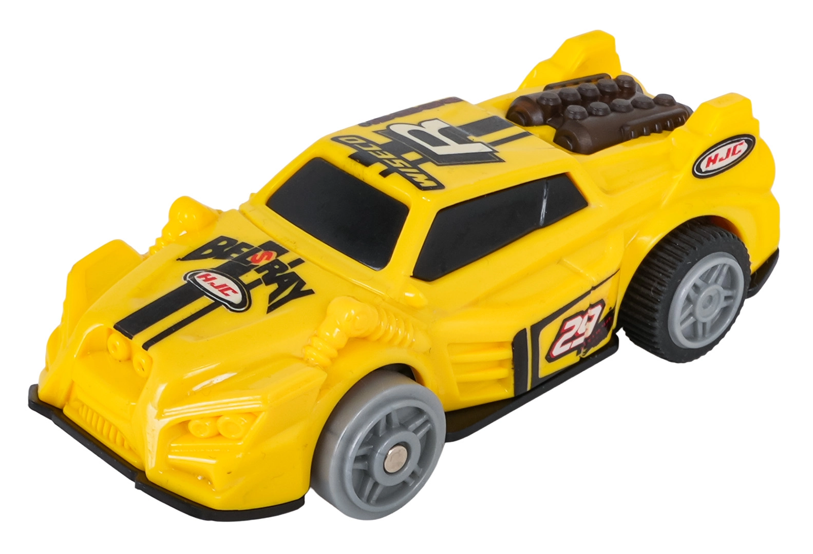 Pezzi snap-fit, barriere protettive e incroci permettono di cambiare facilmente il percorso e mantenere la macchinina saldamente in pista.