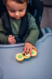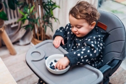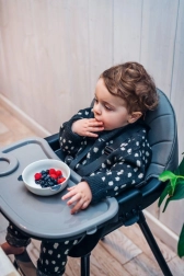 Cresce con il bambino dalle prime pappe fino al gioco creativo. Il vassoio si rimuove facilmente e l’altezza si adatta alla versione bassa per sedersi in autonomia.