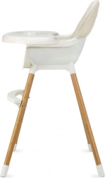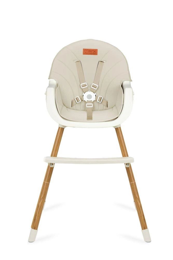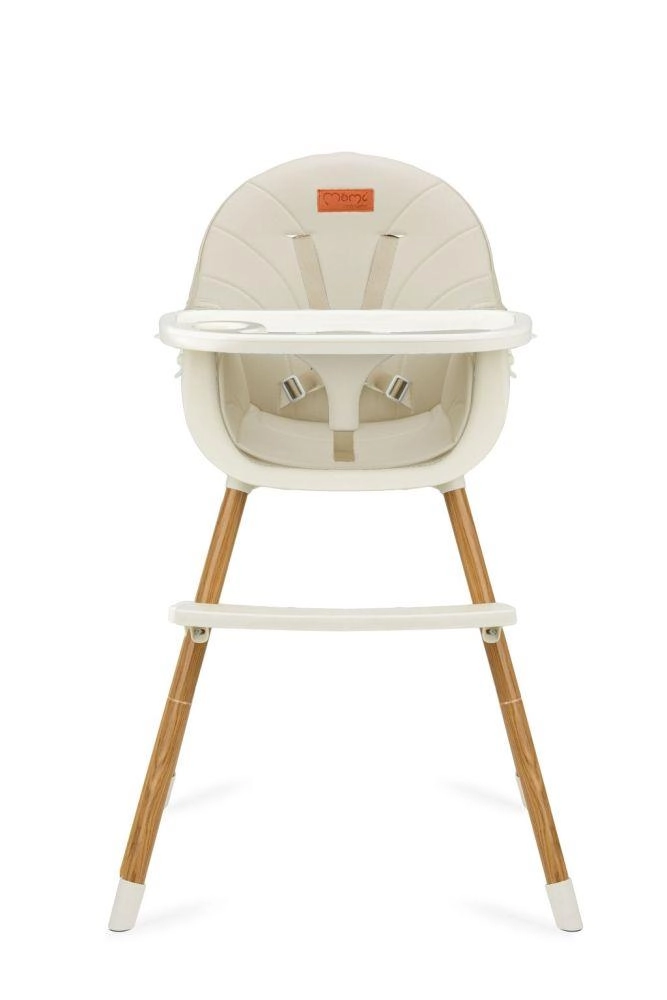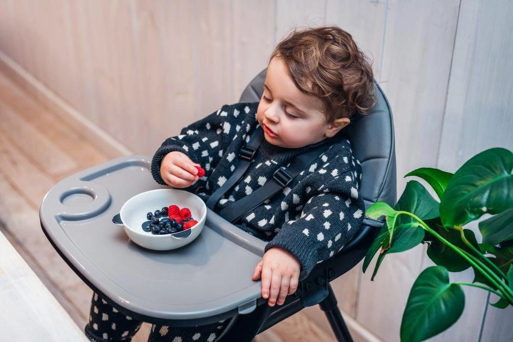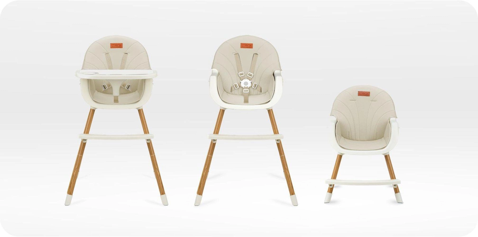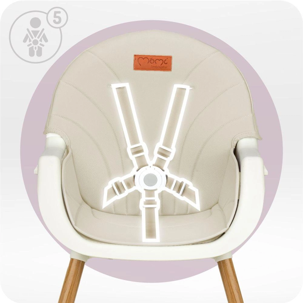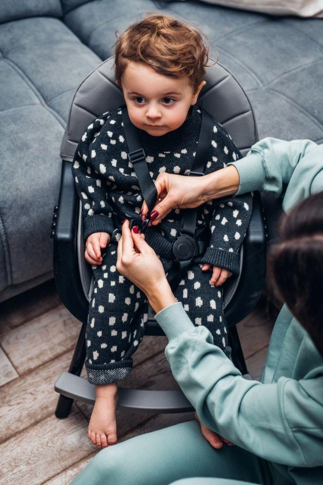 La struttura stabile con poggiapiedi, le cinture di sicurezza a 5 punti e il vassoio doppio regolabile assicurano comfort e sicurezza a ogni pasto. Il design minimalista e i colori neutri si integrano alla perfezione in cucine e soggiorni moderni.