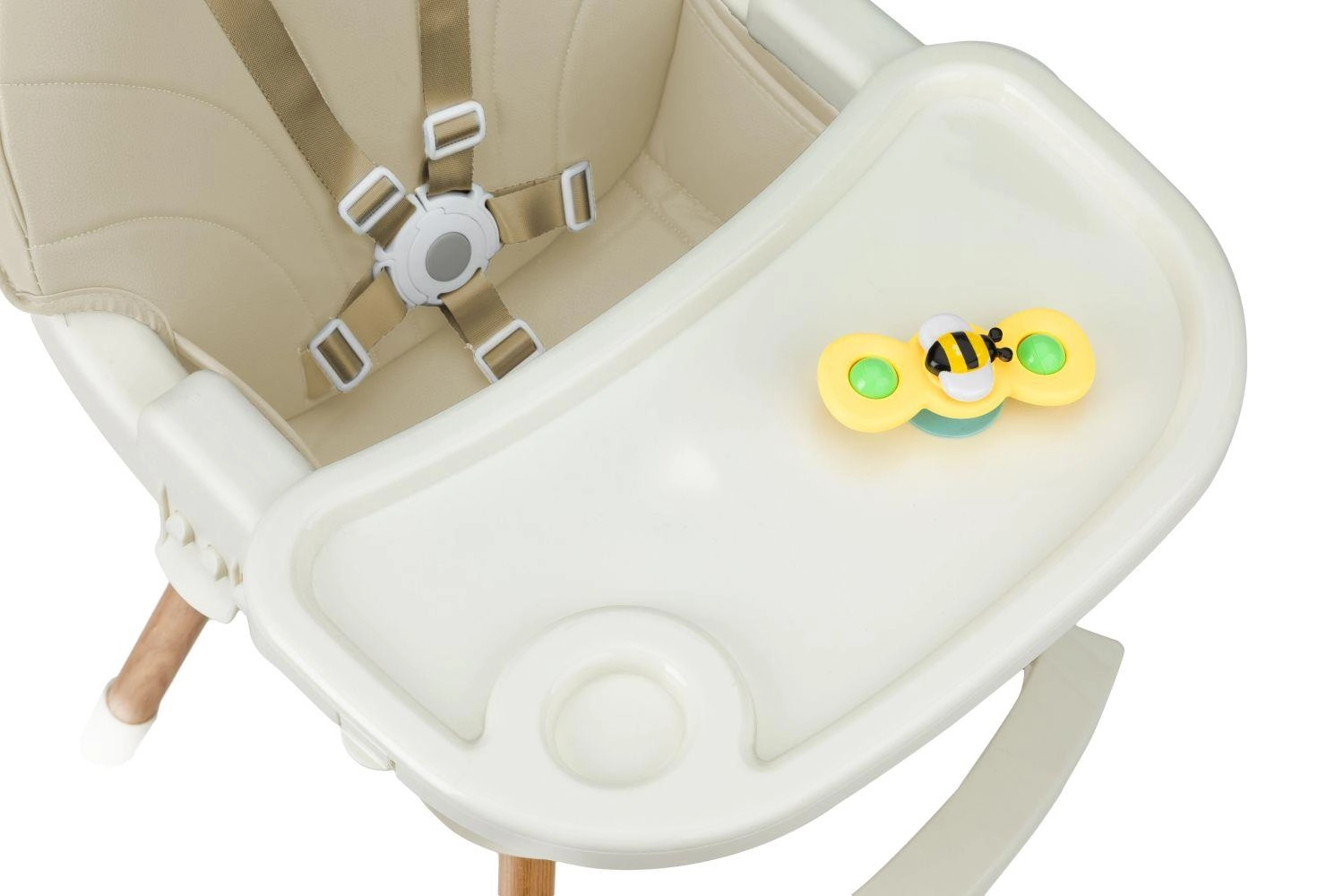 Il seggiolone multifunzionale MoMi Reki nell’elegante colore beige cresce con il tuo bambino dalle prime pappe fino all’età prescolare. Offre 3 in 1 utilizzi (seggiolone con vassoio, sedia alta al tavolo, sedia bassa), rivestimento in ecopelle facile da pulire, doppio vassoio regolabile con portabicchiere e cinture a 5 punti per la sicurezza. Il vassoio superiore è lavabile in lavastoviglie ed è inclusa una giocattolo con ventosa per intrattenere durante i pasti.