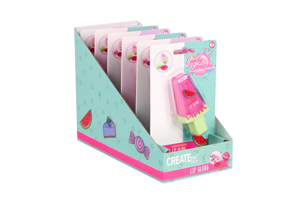 Il lucidalabbra Candy Explosion, nella carinissima forma di ghiacciolo, è un modo perfetto per avere labbra luminose e idratate tutto il giorno. Il formato compatto con possibilità di aggancio come ciondolo lo rende un compagno di stile per i viaggi e la scuola. Scegli tra due temi “golosi” – Watermelon o Marshmallow.
