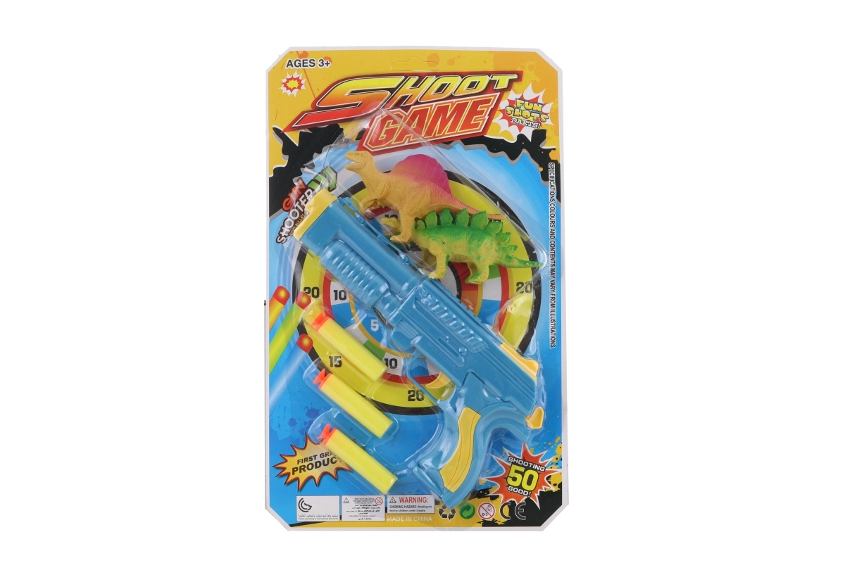 - Pistola, proiettili in schiuma, 2 figure di dinosauri