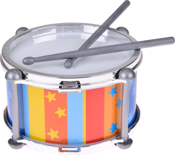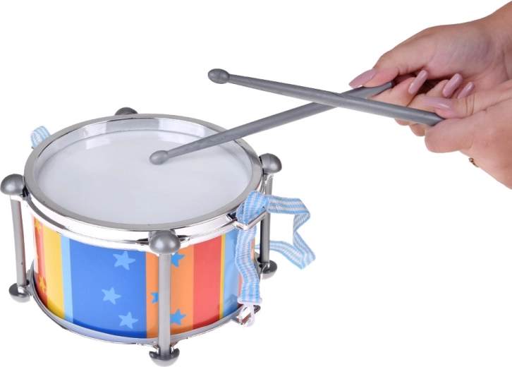 Le strisce verticali colorate con stelline e i cerchi dall’effetto metallico rendono il tamburo un giocattolo e un regalo accattivante. Suonare il tamburo sviluppa la motricità fine, la coordinazione occhio–mano, la percezione uditiva e il naturale senso musicale.