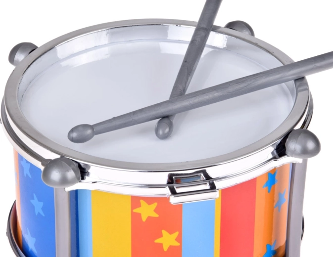 Un tamburo per bambini leggero e resistente con diametro di 18 cm che farà felice ogni piccolo musicista. Inclusi 2 bacchette e una tracolla regolabile per suonare in tutta comodità. Il design colorato con stelline e cerchi lucidi invita a scoprire il ritmo e favorisce lo sviluppo della motricità, il senso del ritmo e la concentrazione.