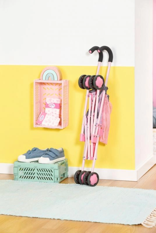 Il passeggino per bambole BABY born è ideale per le passeggiate quotidiane e per il gioco in casa. La leggera struttura in metallo, i comodi manici in schiuma e le quattro doppie ruote assicurano una guida facile anche per le piccole mani dei bambini. Il sedile con allegra fantasia è dotato di cinture di sicurezza che tengono la bambola saldamente in posizione.