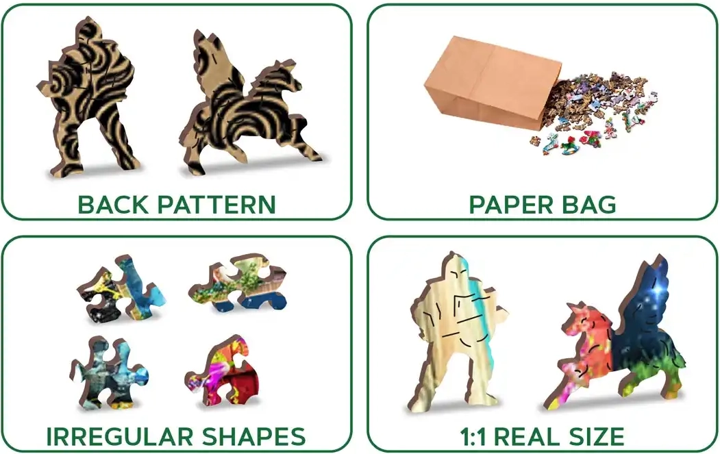Cento pezzi speciali “whimsy” a forma di animali, simboli o personaggi aggiungono una nuova dimensione al montaggio e rendono ogni parte dell’immagine una piccola scoperta.