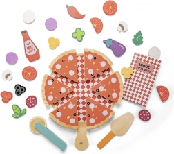 Un colorato e profumato set in legno per preparare la pizza farà felici i piccoli cuochi dai 2 anni in su. Contiene tutto il necessario per giocare alla pizzeria e creare ricette personalizzate: pizza divisa in 6 fette, 21 ingredienti combinabili con velcro, tagliere da portata, rotella tagliapizza, piatto, bottiglia di salsa piccante e menu illustrato. Supporta motricità fine, creatività e cooperazione.