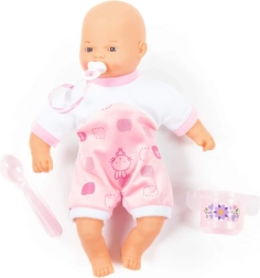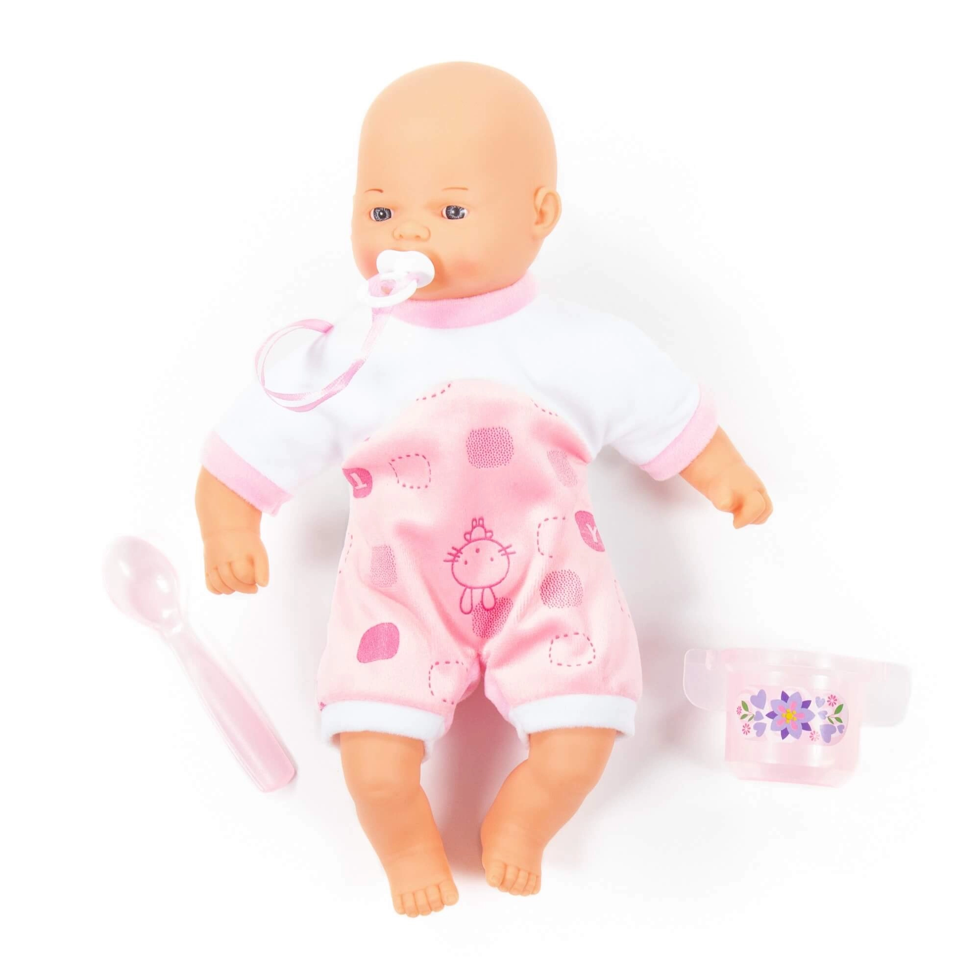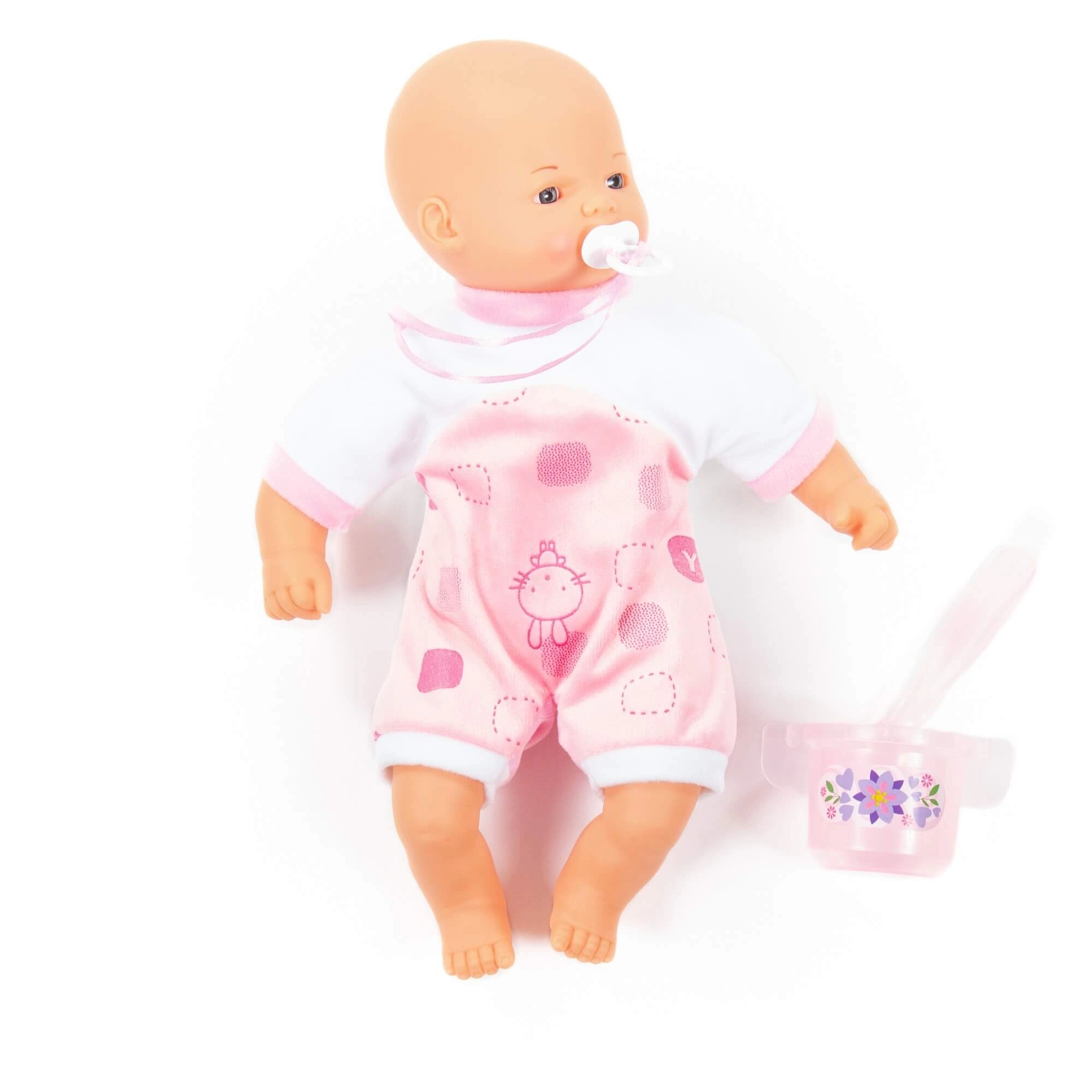 Questa graziosa bambola con corpo morbido è ideale per i primi giochi di mamma e papà. Grazie al ciuccio incluso e al set per la pappa, i bambini possono provare a prendersene cura, sviluppando fantasia e motricità fine.