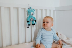 Adorabile orsacchiotto di peluche per neonati dalla nascita, apprezzato per la sua morbidezza, il sonaglio integrato e la pratica clip per appenderlo a passeggino, lettino e seggiolino auto. Dettagli a contrasto e forme in plastica sicure per lo sviluppo della motricità fine lo rendono il compagno ideale a casa e in viaggio. Il giocattolo è certificato nella Repubblica Ceca e soddisfa rigorose norme di sicurezza.