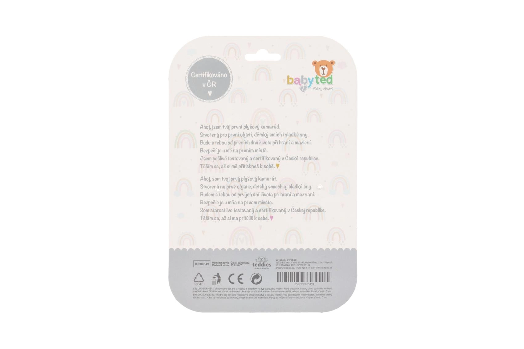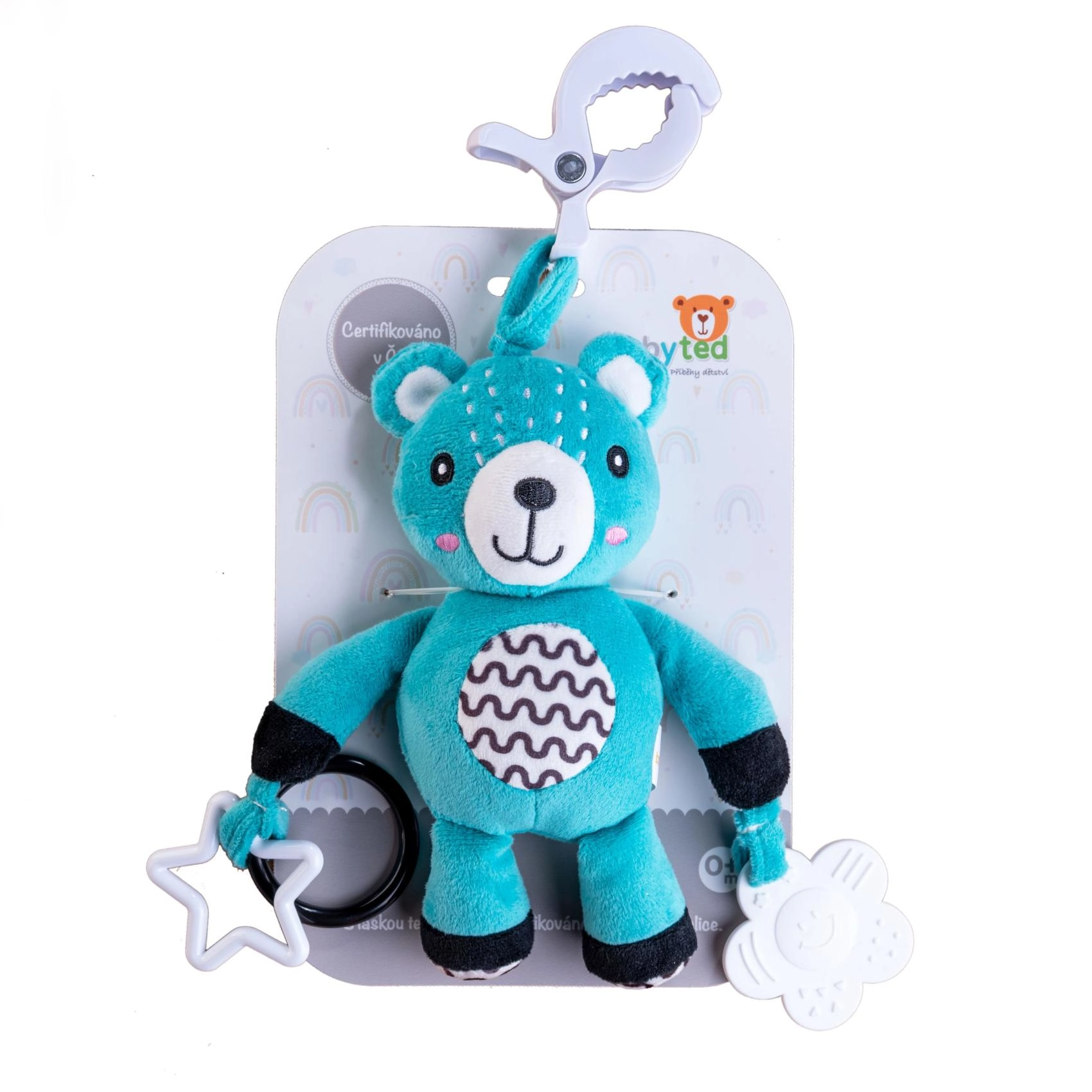 Il giocattolo è certificato nella Repubblica Ceca, conforme a rigorose norme di sicurezza ed è adatto ai neonati. Grazie alla struttura leggera e alla clip resistente è il compagno ideale per i viaggi e per il gioco quotidiano.
