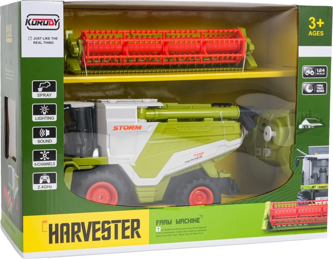 Mietitrebbia RC per bambini 1:24 verde con effetto fumo