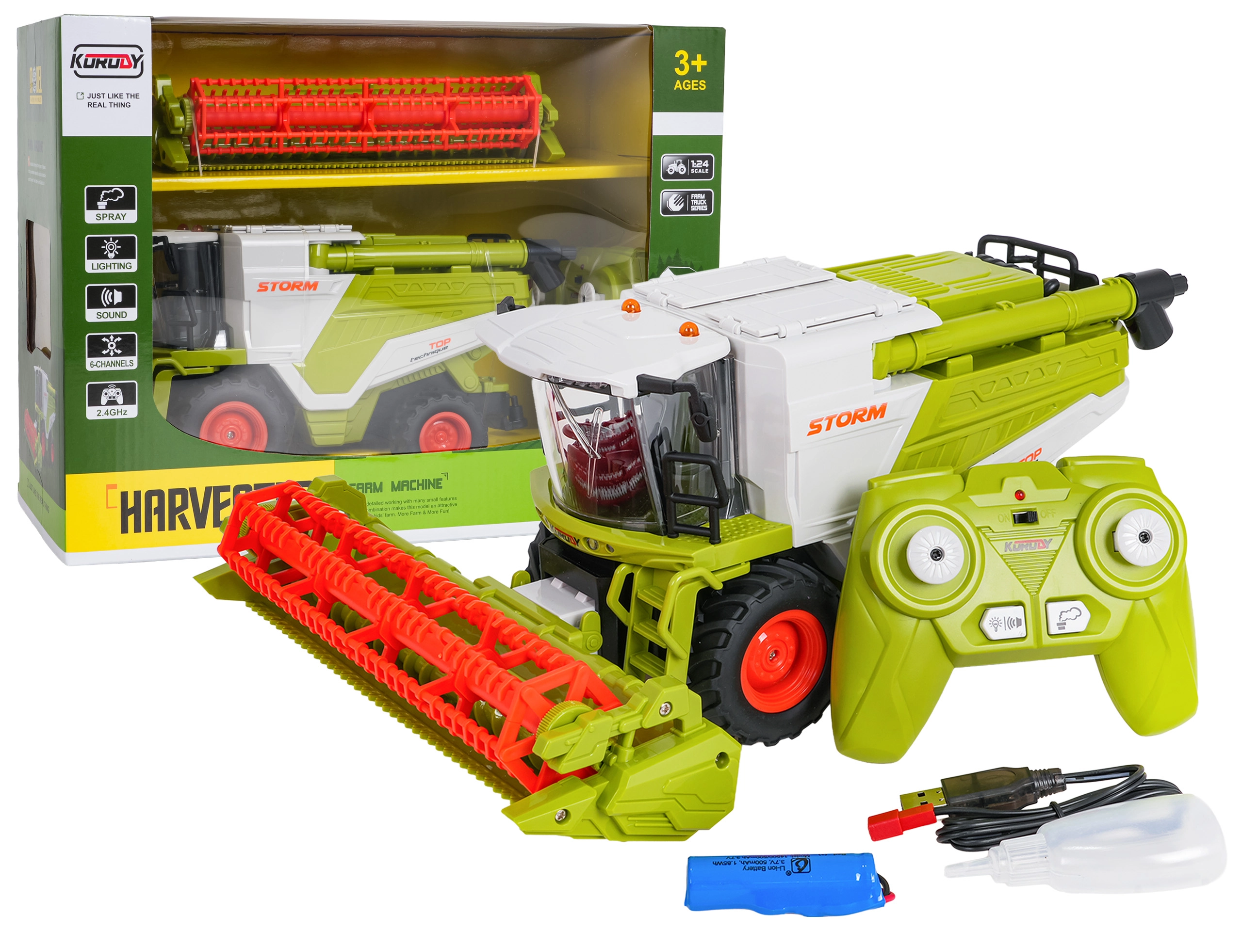 Realistica mietitrebbia RC in scala 1:24 che entusiasmerà i piccoli contadini dai 3 anni in su. Offre guida in tutte le direzioni, ruote in gomma con ottima aderenza, barra falciante rotante, serbatoio del grano apribile e illuminazione LED. Grazie all'effetto fumo (vapore acqueo) e ai suoni realistici sembra una vera macchina. Il controllo avviene a 2,4 GHz, con possibilità di disattivare luci e suoni e con spegnimento automatico per risparmiare la batteria.