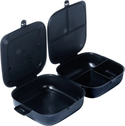Il lunchbox nero dallo stile opaco è una soluzione eccellente per i pasti quotidiani fuori casa. Due contenitori separati con coperchio proprio permettono di dividere il piatto principale da snack, frutta o insalata, così potrai gustare il cibo esattamente come l’hai preparato. Le dimensioni compatte 16 × 16 × 9 cm entrano nello zaino o nella borsa da lavoro.