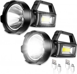 La batteria ricaricabile integrata si ricarica tramite USB e, grazie alla funzione power bank, può anche ricaricare il telefono sul campo. La struttura resistente in plastica di qualità, la pratica maniglia e la base stabile facilitano il trasporto e il posizionamento nella giusta angolazione. Soluzione eccellente per outdoor, officina, garage, auto e giardino.