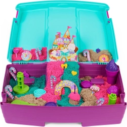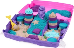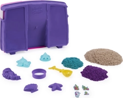 La texture unica di Kinetic Sand fa sì che i granelli si attraggano, impedendo alla massa di spargersi per la stanza e mantenendo spigoli puliti ai modelli. I bambini possono creare facilmente castelli, torri, conchiglie, stelle marine, piccole tartarughe e sirene. Il set è adatto dai 3 anni.