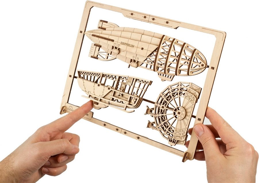 Ugears puzzle 3D Zeppelin 2,5D – modello meccanico in legno, 49 pezzi
