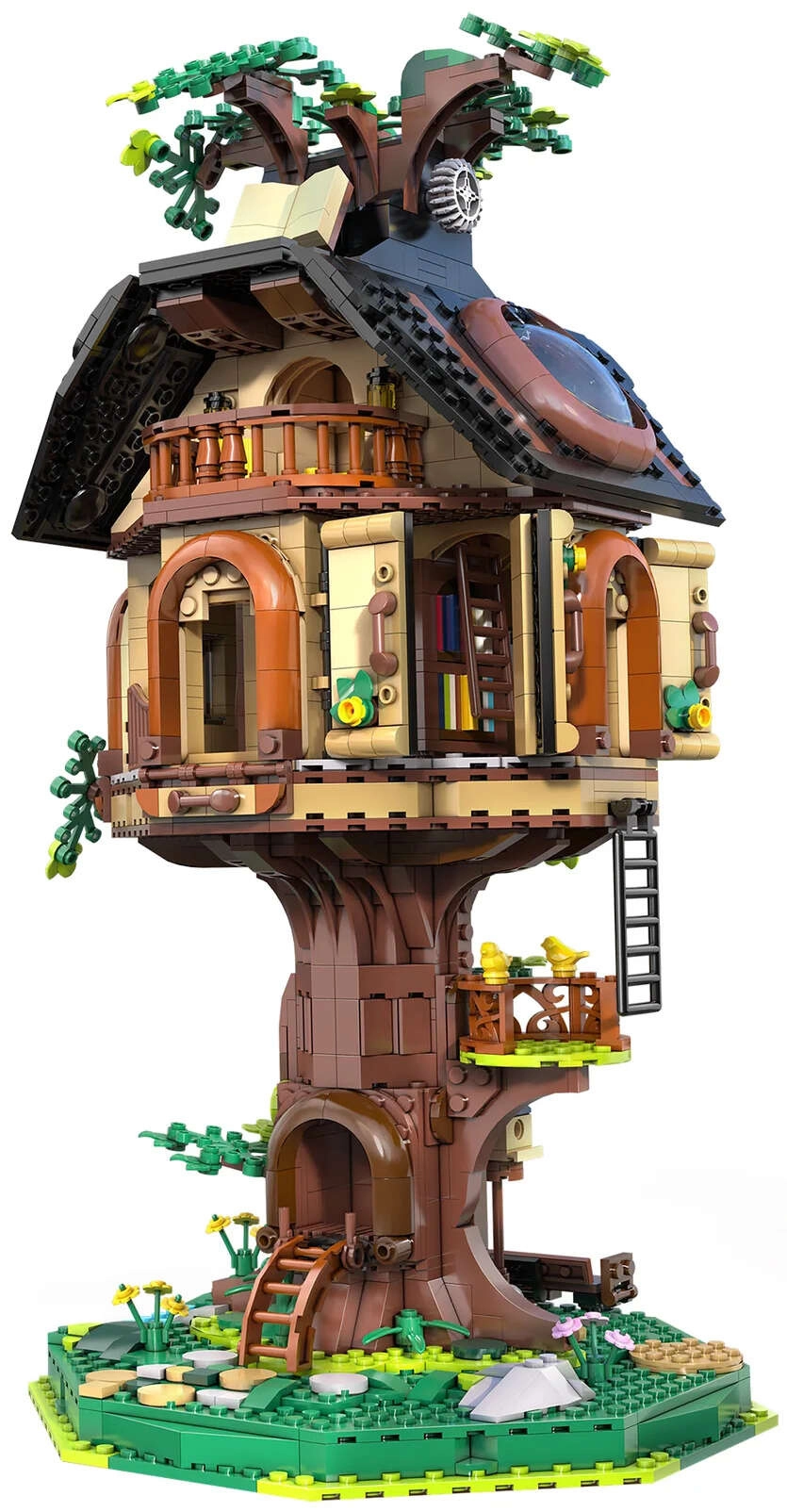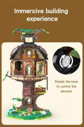 Costruisci un’originale biblioteca nella casa sull’albero con disposizione a due piani: al piano terra si trova la biblioteca con scaffali, finestre e scale; al piano superiore un’accogliente sala di lettura con telescopio. L’albero sorge in una pittoresca radura con fiori e casetta per uccelli; non mancano il tetto apribile e un balcone per l’osservazione degli uccelli.