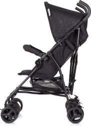 Per i genitori, la maneggevolezza è garantita da impugnature confortevoli e ruote piroettanti con freno posteriore collegato. Il cestello capiente contiene tutto il necessario per il viaggio. Il passeggino è realizzato in conformità alla norma europea EN 1888-1 + A1:2022, soddisfacendo severi requisiti di sicurezza e qualità.