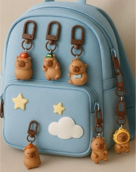 Arricchisci i tuoi accessori di ogni giorno con adorabili capibara. Figure compatte e leggere, perfette come decorazione per chiavi, zaino o astuccio, senza risultare ingombranti. Dettagli colorati e varianti diverse conferiscono a ogni pezzo un carattere unico.