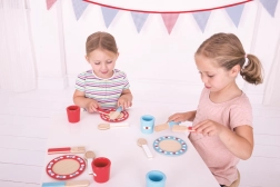 Questo colorato set da pranzo in legno 0e progettato per i giovani cuochi principianti che vogliono preparare le proprie cene e organizzare t0e aperitivi. Un ottimo complemento per ogni cucina in legno da gioco, il set include: